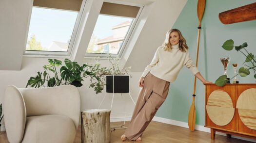 Innym sposobem pozwalającym uczynić z poddasza przestrzeń sprzyjającą regeneracji jest montaż wewnętrznych akcesoriów do okien dachowych. Rolety wewnętrzne od FAKRO występują w rożnych odcieniach zieleni, dzięki czemu nie tylko udekorują nasze okna, ale wniosą świeżość i subtelny powiew wiosny. Wraz z pozytywnym wpływem na nasze samopoczucie zyskujemy również praktyczność – możliwość regulacji ilości światła wpadającego do pomieszczenia. Dodatkowo niektóre rolety posiadają system top-down, który umożliwia swobodną jej obsługę za pomocą górnej i dolnej belki.