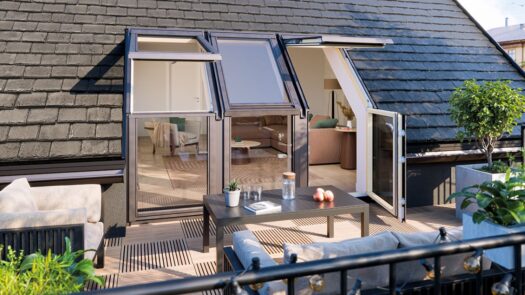 Spektakularnym rozwiązaniem jest przekształcenie poddasza w strefę z bezpośrednim wyjściem na taras. Umożliwiają to nowoczesne, duże okna tarasowe od FAKRO, które po otwarciu skrzydeł tworzą komfortowe wyjście na zewnątrz. To, co dotychczas wydawało się poza naszym zasięgiem, przybiera formę miniaturowego ogrodu pełnego zielonych roślin. W takim otoczeniu nawet zwykła herbata – najlepiej zielona – smakuje zupełnie inaczej.