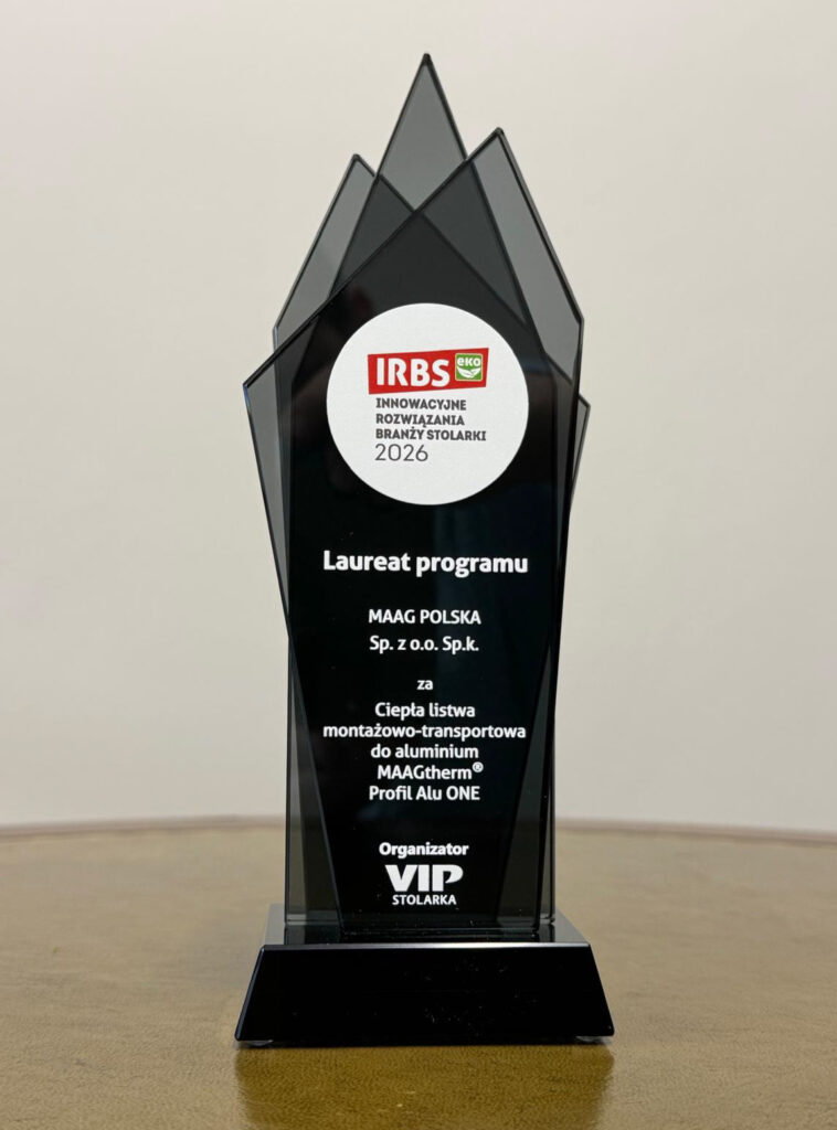 MAAG Polska została laureatem XI edycji programu „Innowacyjne Rozwiązania Branży Stolarki 2026”. Nagroda została wręczona podczas 37. Konwentu Stolarki VIP. Wyróżnienie przyznano za MAAGtherm® Profil Alu ONE – pierwszą na rynku ciepłą listwę montażowo-transportową zaprojektowaną specjalnie do systemów aluminiowych.