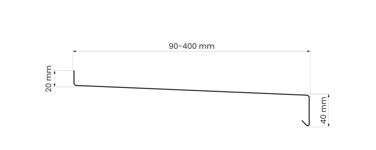 przekrój parapetu z noskiem o wysokości 20 mm
