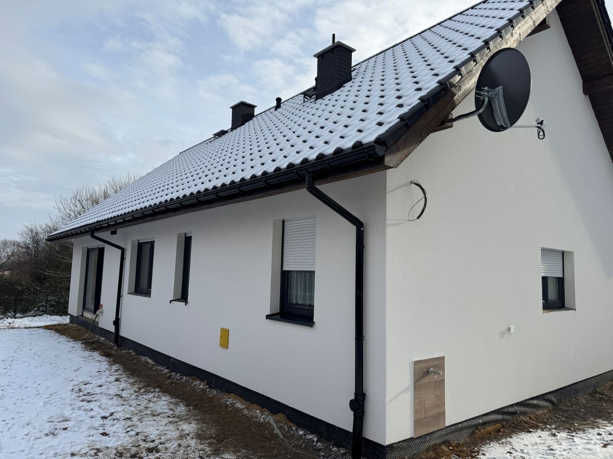 ● Trwałość tynku – poprawny spadek chroni elewację przed zaciekami i przebarwieniami, które często pojawiają się w dolnych częściach ościeży.