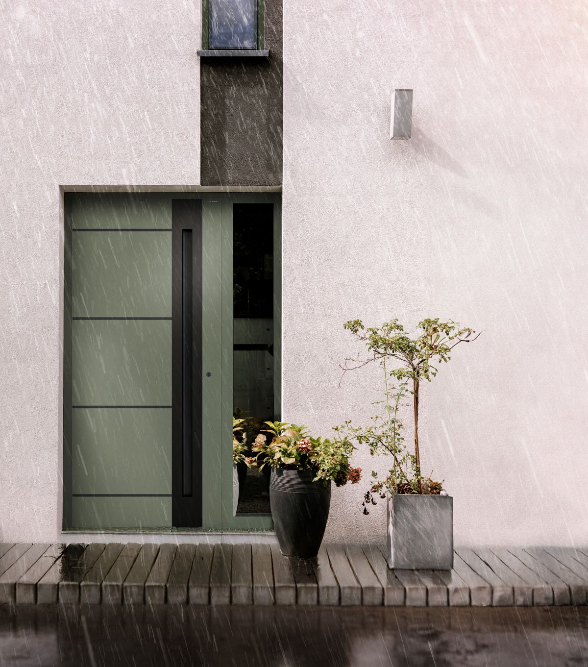 Drzwi zewnętrzne WIŚNIOWSKI zostały zaprojektowane z myślą o bezpośredniej ekspozycji na warunki atmosferyczne. Jak podkreśla Robert Mastalski, menadżer produktu WIŚNIOWSKI: Nowoczesne drzwi wejściowe nie wymagają osłony, jeśli zostały zaprojektowane z myślą o realnych warunkach użytkowania. Brak zadaszenia nie oznacza dziś ryzyka, daje natomiast pełną swobodę projektowania.