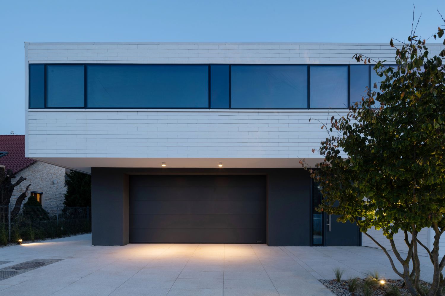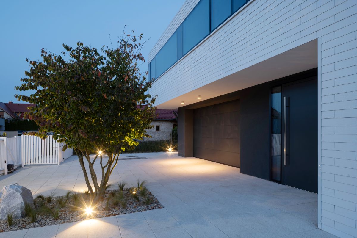 Integralną częścią projektu są brama garażowa i drzwi zewnętrzne marki WIŚNIOWSKI, które perfekcyjnie wkomponowano w estetykę budynku.